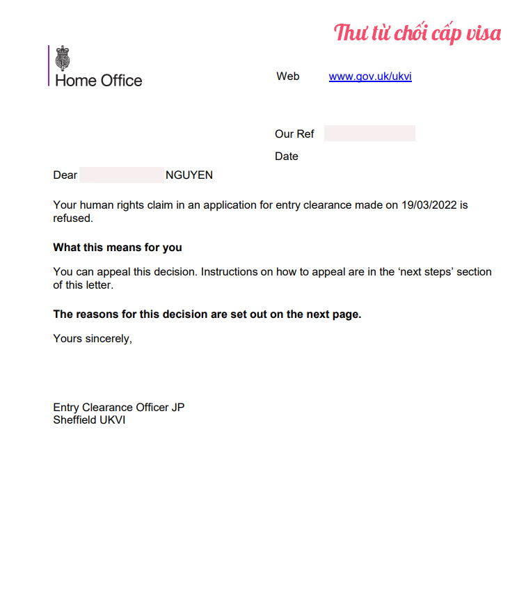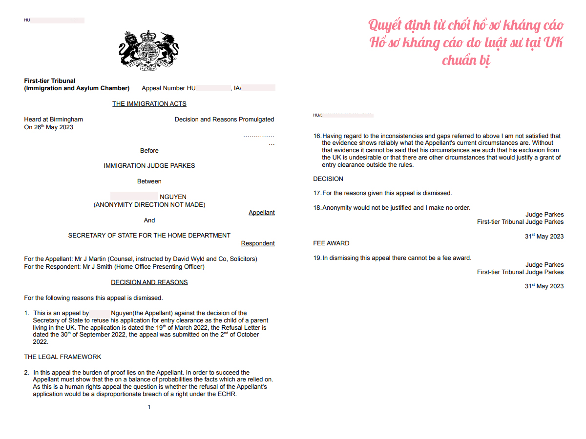 Tiếp theo sau đó, gia đình chị đã nhờ sự hỗ trợ của luật sư làm đơn kháng cáo lên tòa án về việc từ chối cấp visa Anh cho con trai chị nhưng quyết định của tòa án vẫn không đồng ý cho con chị được nhận visa.